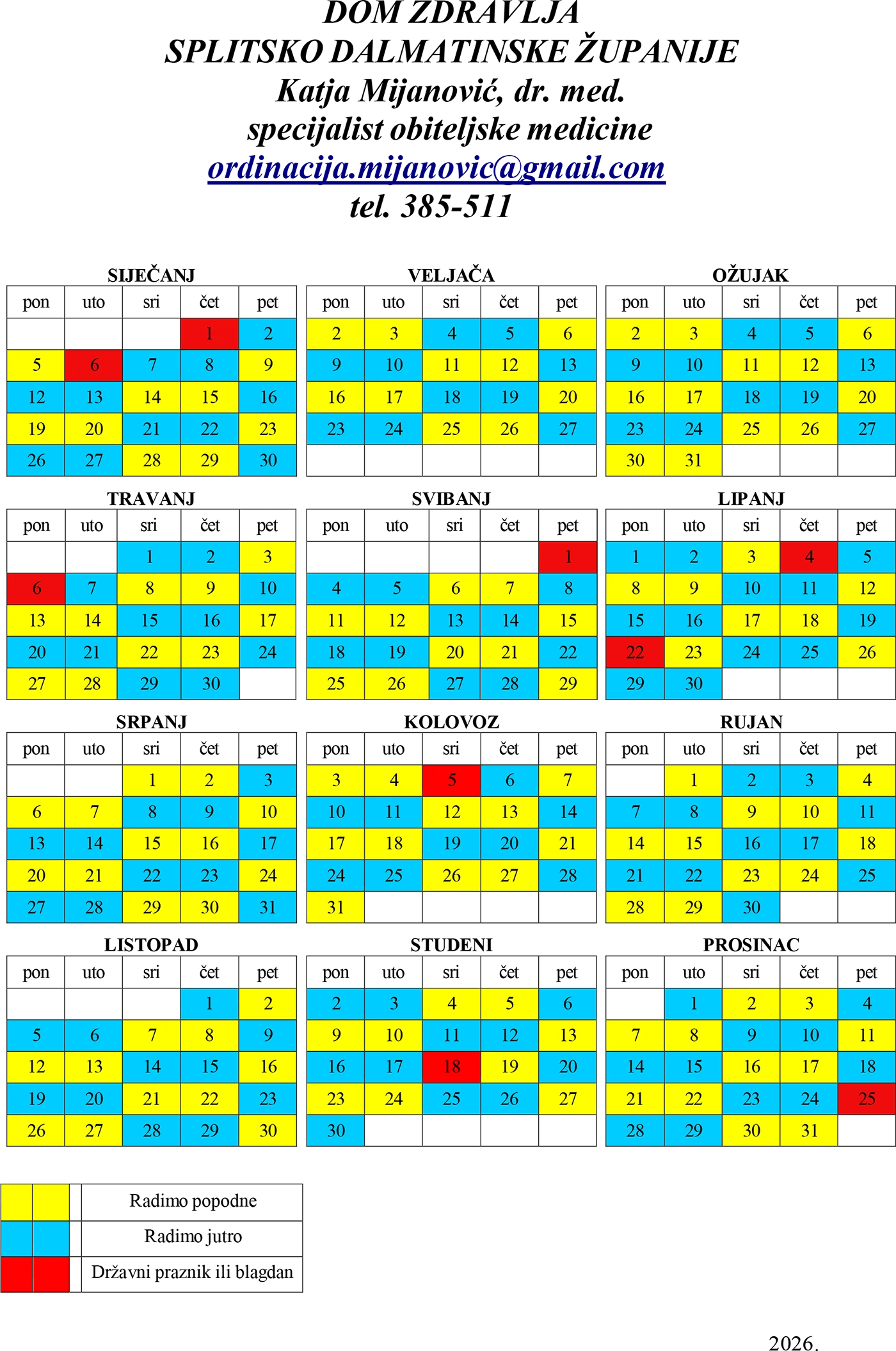 Ovdje možete preuzeti raspored radnog vremena ambulante RADNO VRIJEME